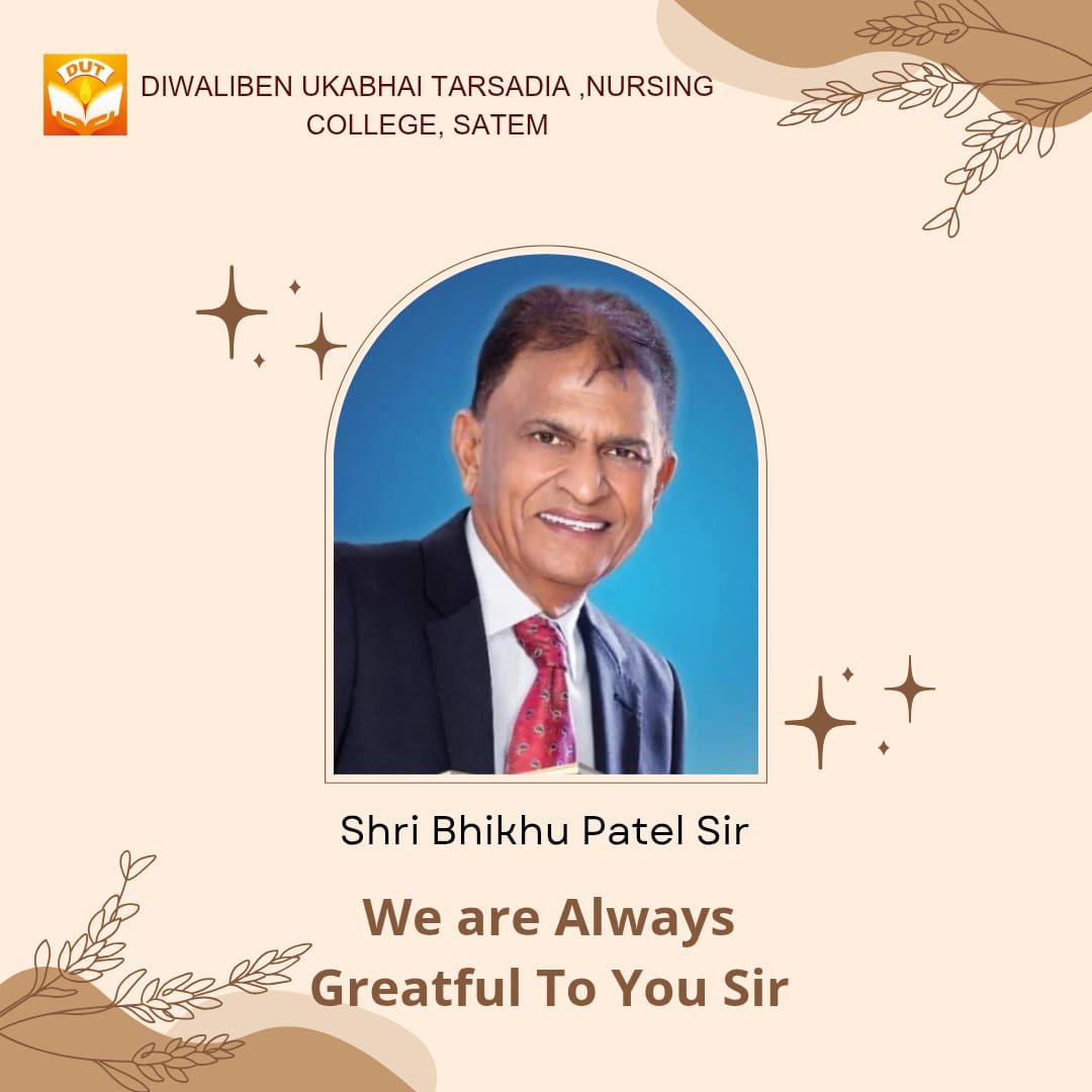 We believe in educating nurses to meet the challenges of the modern health care delivery system, in conformity with the discipline of nursing profession. The management and faculty of Diwaliben Ukabhai Tarsadia Nursing college believe that in a changing society, nursing has a significant role to play in order to maintain values and improve health of people along a positive continuum.